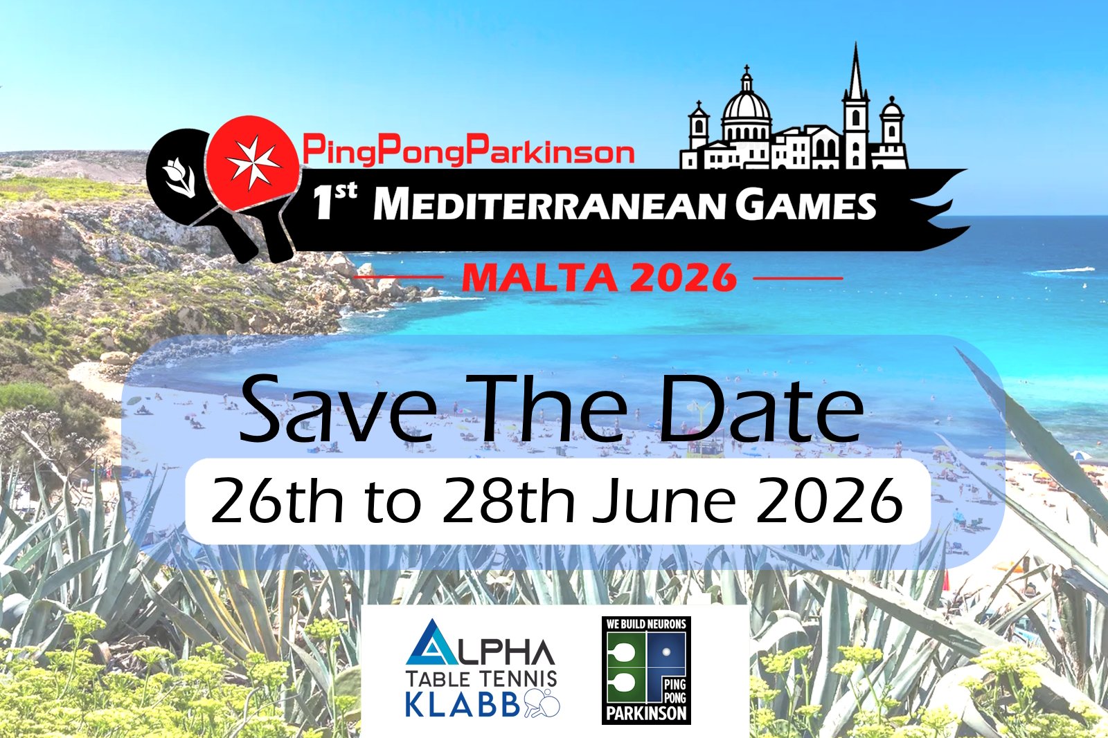Alpha Table Tennis Klabb, Malta, and PingPongParkinson International are organising the 1st PingPongParkinson Mediterranean Games, to be held in Malta from the 26th to the 28th of June 2026.
